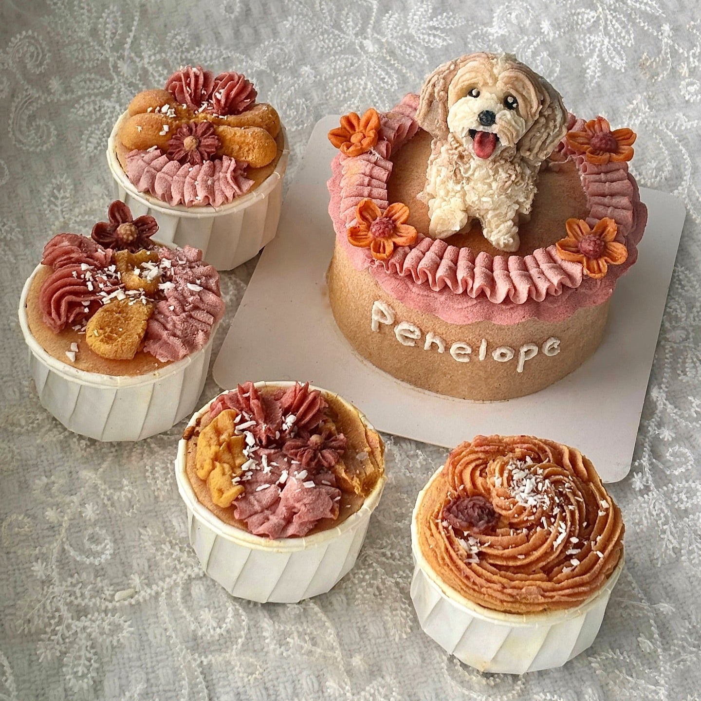 Our most pawpular bundle! Pair a custom cake with matching cupcakes — perfect for pup parties, daycare celebrations, or sharing with furry guests.