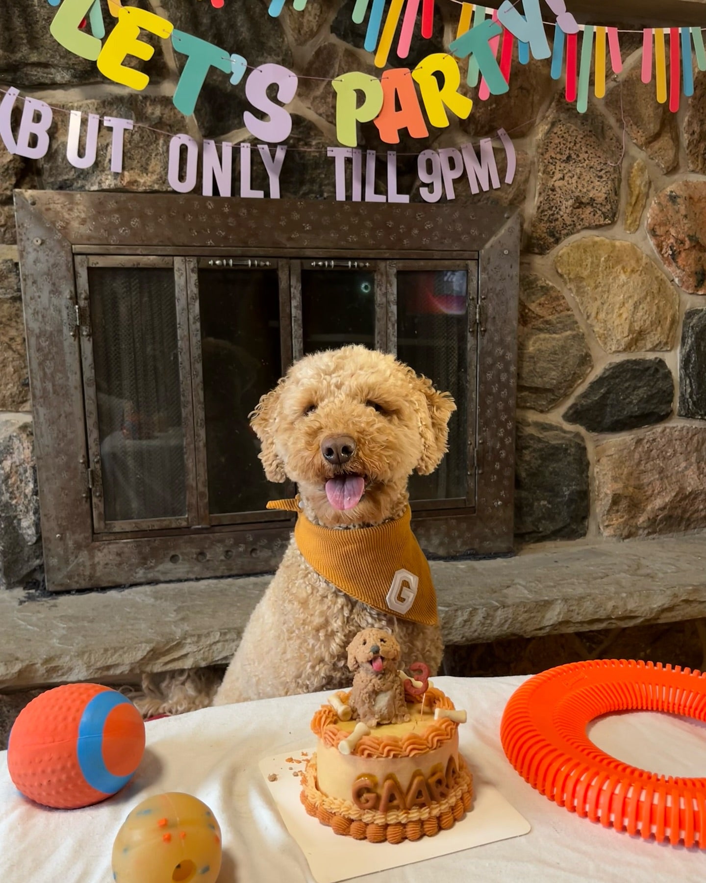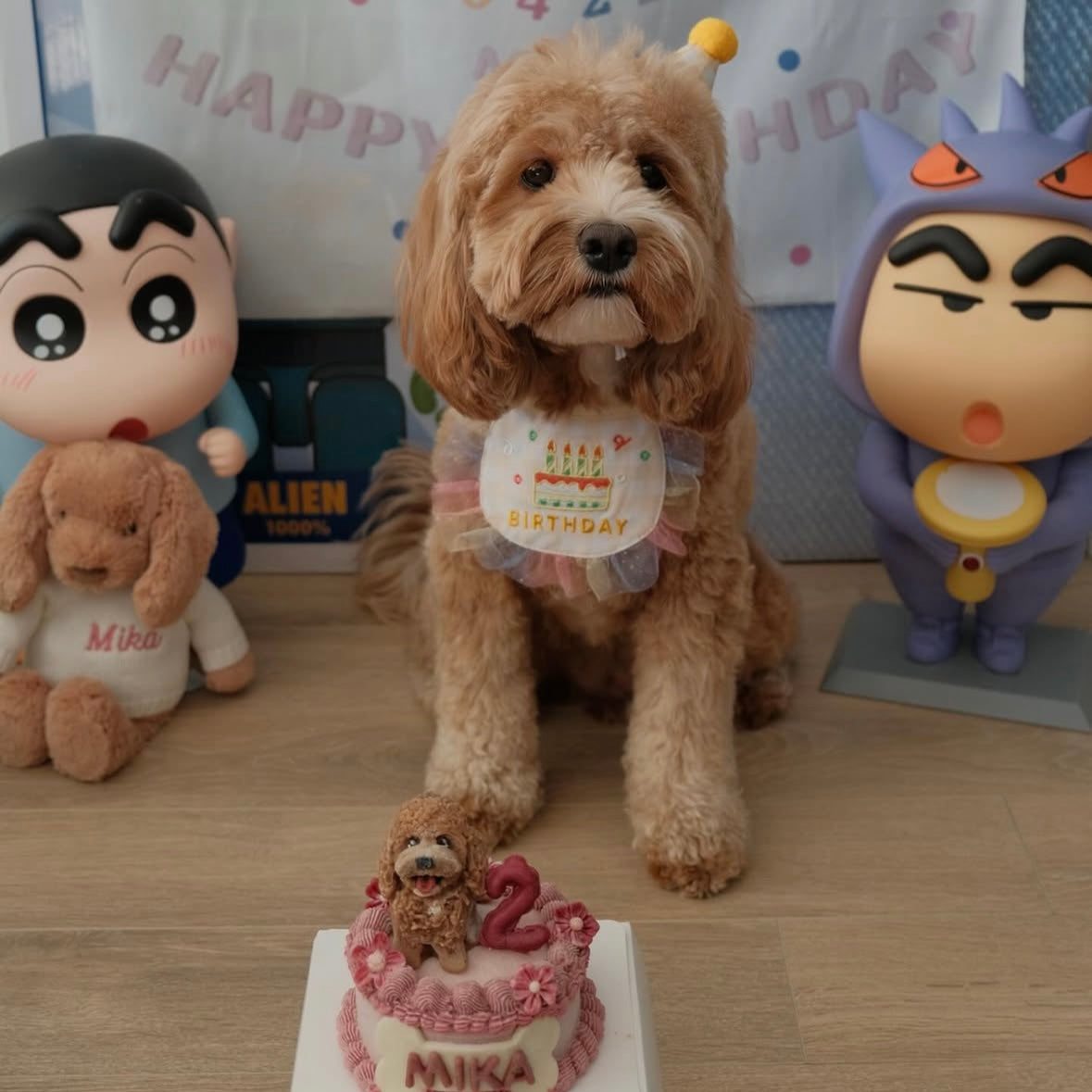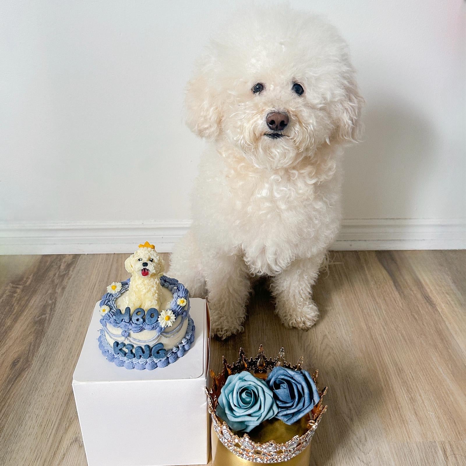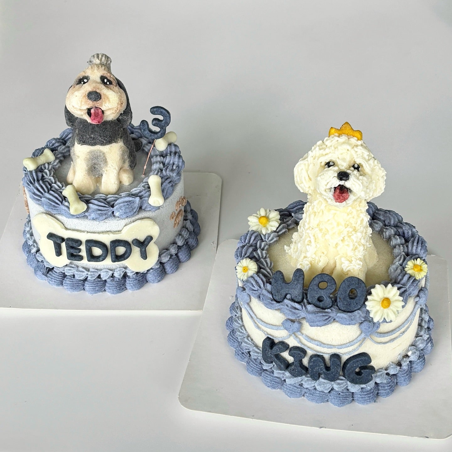 This cake brings on the swirls, ruffles, and soft pastel magic — inspired by vintage bakery vibes but made 100% pup-safe.